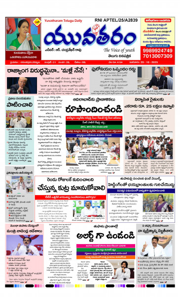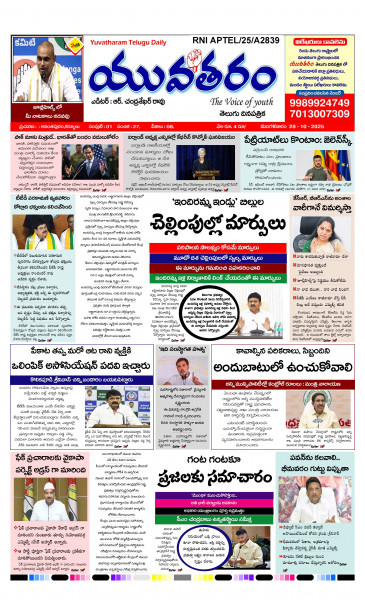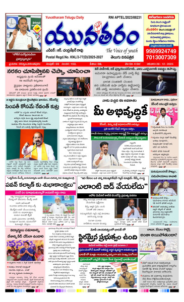 రెండు తెలుగు రాష్ట్రాలలో ప్రజల మన్ననలు పొందిన యువతరం తెలుగు దినపత్రికకు రెండు తెలుగు రాష్ట్రాలలో అనుభవం కలిగిన జిల్లాస్థాయి బ్యూరోలు, నియోజకవర్గ స్థాయి ప్రతినిధులు, మండల స్థాయి జర్నలిస్టులు కావలెను. యువతరం దినపత్రికలో చేరదలిచిన వారు 9989924749 నంబర్ ను సంప్రదించవలసినదిగా కోరడమైనది. మీ మొబైల్ లో యువతరం మొబైల్ యాప్ ని డౌన్లోడ్ చేసుకోండి.